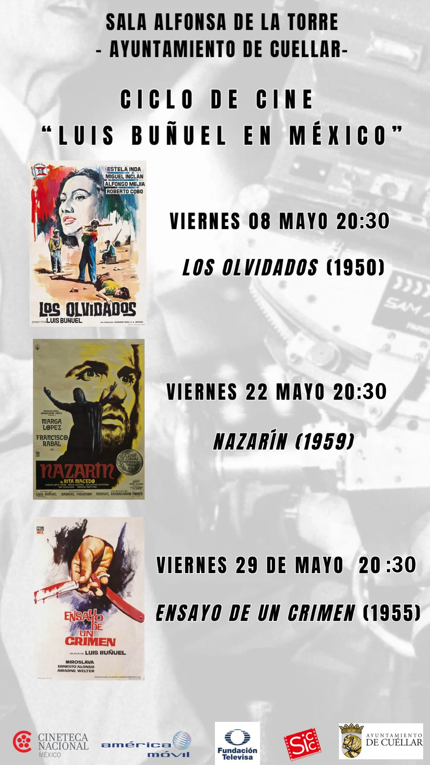 La sección El cine continúa de la Semana Internacional de Cine de Cuéllar arranca mayo con una propuesta de altura: tres películas rodadas por Luis Buñuel durante su etapa mexicana que figuran entre las grandes obras del cine universal. Una colaboración con la Embajada de México, la Fundación Televisa, América Móvil y la Cineteca Nacional